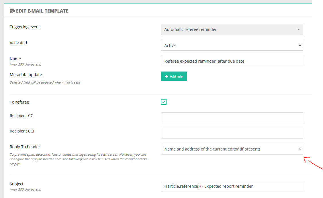 In e-mail addressing, the Reply-To header is the address that should be used to reply to a message. Typically in Nestor, this mechanism is used in this scenario: