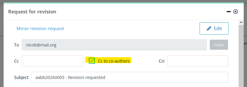 The new version of Nestor allows you to put coauthors in cc of some messages sent to the corresponding author. This way, coauthors are better informed about the evaluation process. For this to work, you will need to activate the option in the template configuration: